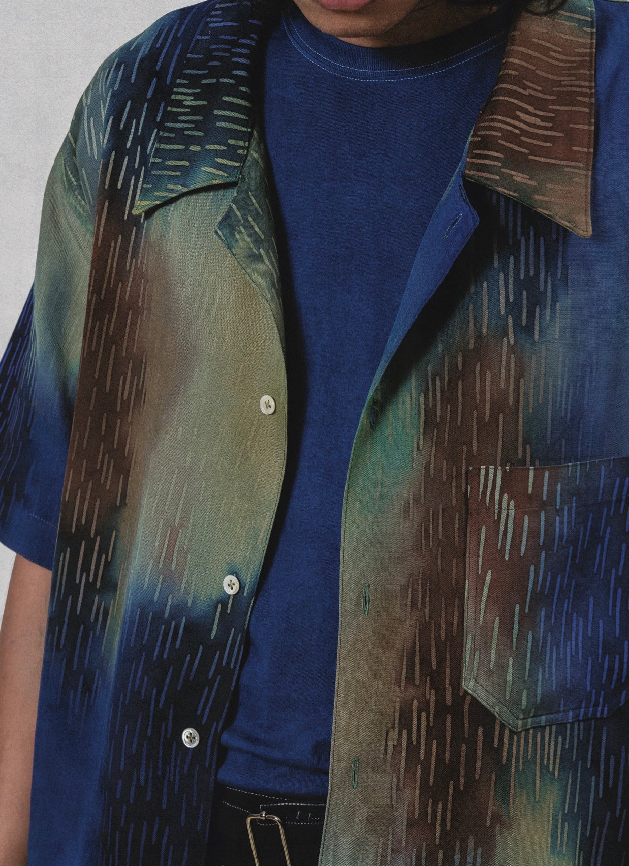 Overdyed Ombre Batik Shirt with Line Motif